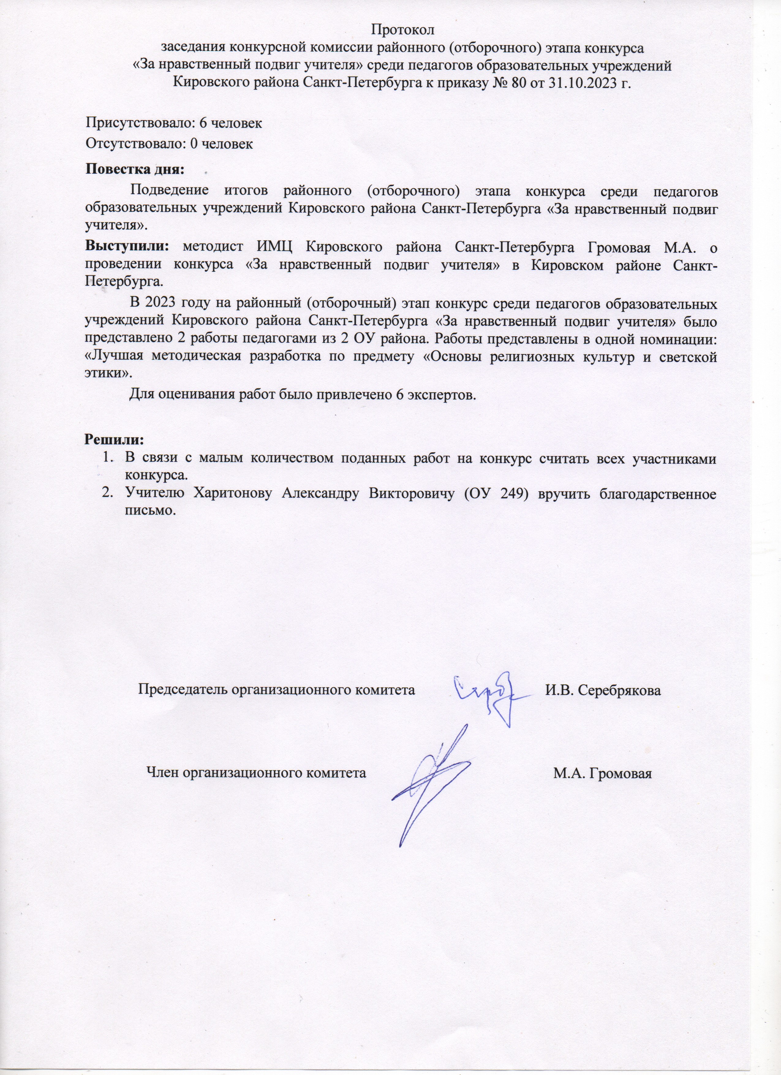 Протокол итогов конкурса За нравственный подвиг учителя 2022-2023